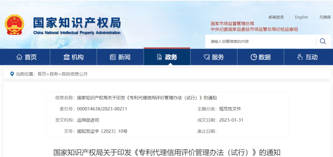 國家知識產(chǎn)權(quán)局關(guān)于印發(fā)《專利代理信用評價管理辦法(試行)》的通知