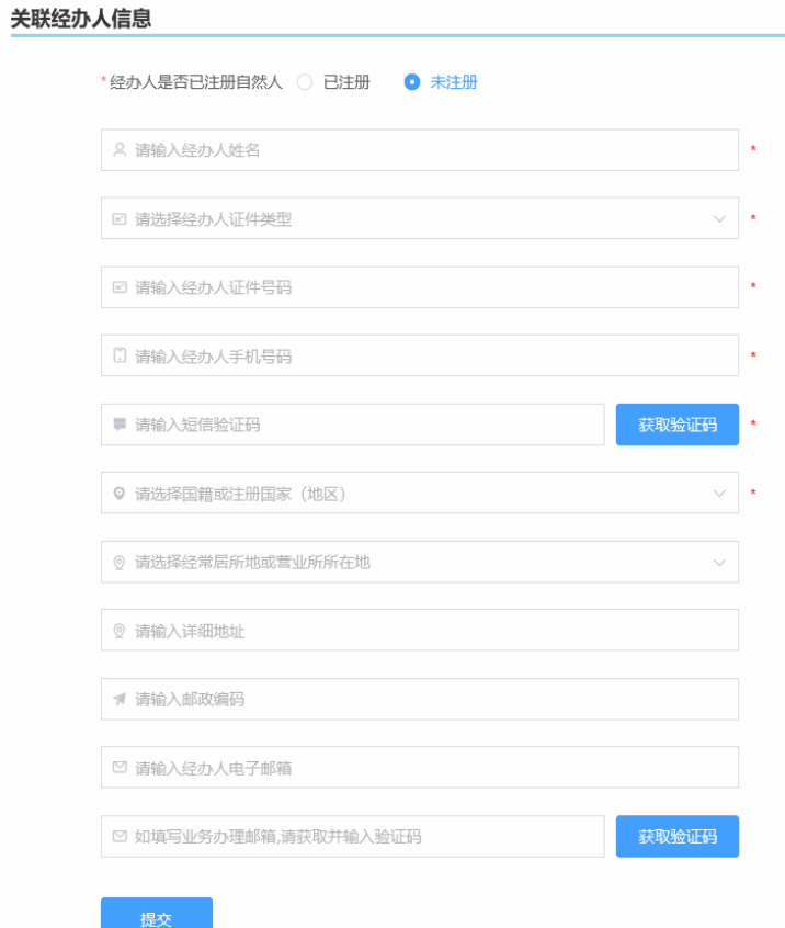 短信和郵箱等驗證通過后,下一步關(guān)聯(lián)經(jīng)辦人。