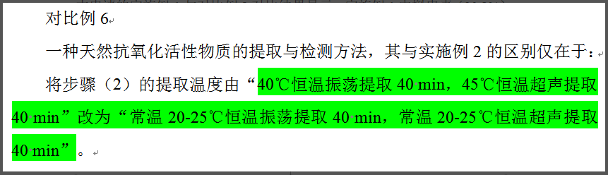 從上述的實驗結(jié)果可以看出,設(shè)置提取食品時,60℃-80℃避光恒溫振蕩提取30-40 min,30-45℃避光恒溫超聲提取40-50 min。提取中藥材時,40℃恒溫振蕩提取40 min,45℃恒溫超聲提取40 min對天然抗氧化活性成分的高效提取具有關(guān)鍵作用,其提取溫度的設(shè)置并不是常規(guī)的優(yōu)化選擇。通過上述的思路進(jìn)行答復(fù),該專利最終獲得了授權(quán)。