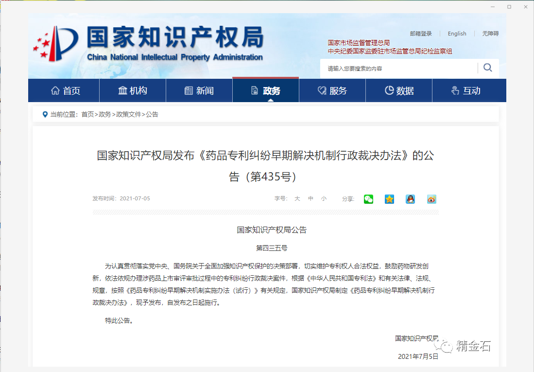 近日,國家藥品監(jiān)督管理局、國家知識產(chǎn)權(quán)局兩部門聯(lián)合發(fā)布了《藥品專利糾紛早期解決機(jī)制實(shí)施辦法(試行)》,隨后國家知識產(chǎn)權(quán)局發(fā)布《藥品專利糾紛早期解決機(jī)制行政裁決辦法》的公告(第435號),與此同時(shí)最高法發(fā)布了司法14條《最高人民法院關(guān)于審理申請注冊的藥品相關(guān)的專利權(quán)糾紛民事案件適用法律若干問題的規(guī)定》。