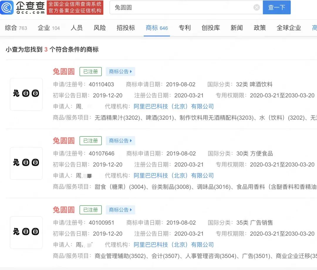 12月28日,據(jù)報(bào)道,李子柒(李佳佳)與微念已在一些條件上達(dá)成一致,雙方未來(lái)將繼續(xù)合作。企查查APP顯示,李子柒本名李佳佳被多家公司申請(qǐng)注冊(cè)為商標(biāo),目前,已有3枚商標(biāo)被成功注冊(cè),申請(qǐng)人分別為鄭州一商貿(mào)公司以及深圳一科技公司,國(guó)際分類包括方便食品、食品、廣告銷售。此外,有1枚“李佳佳”商標(biāo)狀態(tài)為“駁回待復(fù)審”,國(guó)際分類為30類方便食品。