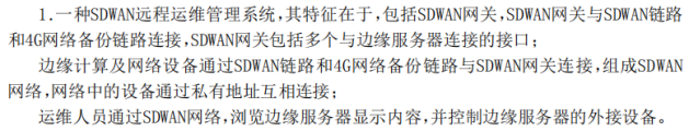 以上意見陳述,證明了本案的技術(shù)方案的關(guān)鍵發(fā)明點是通過邊緣服務(wù)器、邊緣計算及網(wǎng)絡(luò)設(shè)備與SDWAN網(wǎng)關(guān)的連接關(guān)系構(gòu)成SDWAN網(wǎng)絡(luò),以上連接關(guān)系所確定的網(wǎng)絡(luò)不屬于方法。