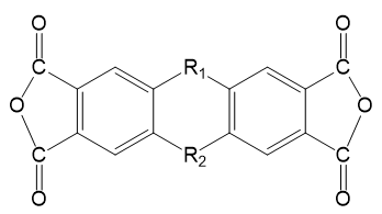 6FCDA(9,9-雙(三氟甲基)氧雜蒽四甲酸二酐)(與化合物3相同)、3FCDA(9,9-三氟甲基苯基氧雜蒽四甲酸二酐)(與化合物2相同)、DODA(4,4’,5,5’-雙氧雙鄰苯二甲酸酐)。