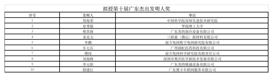 根據(jù)《廣東省專利獎勵辦法》(廣東省人民政府令258號),第十屆廣東專利獎共評選出廣東專利金獎20項、廣東專利銀獎40項、廣東專利優(yōu)秀獎60項、廣東杰出發(fā)明人獎10項,現(xiàn)予以公示,公示期為2023年12月16日至12月30日。