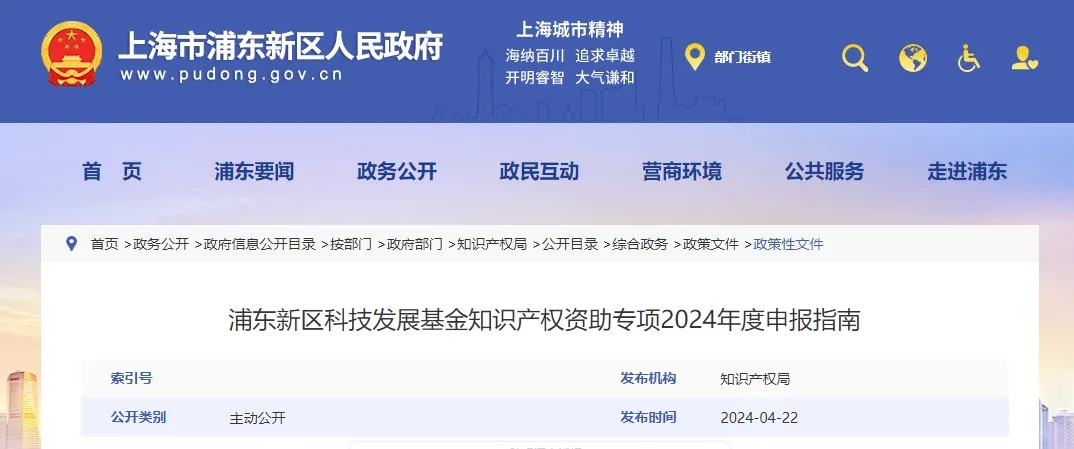 浦東新區(qū)科技發(fā)展基金知識(shí)產(chǎn)權(quán)資助專項(xiàng)2024年度申報(bào)指南
