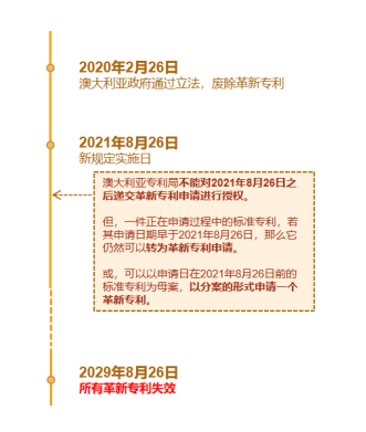 因此,2021年8月25日之后,申請人將無法再提交非分案的澳大利亞革新專利申請,所以,想申請澳大利亞革新專利的小伙伴要抓緊啦