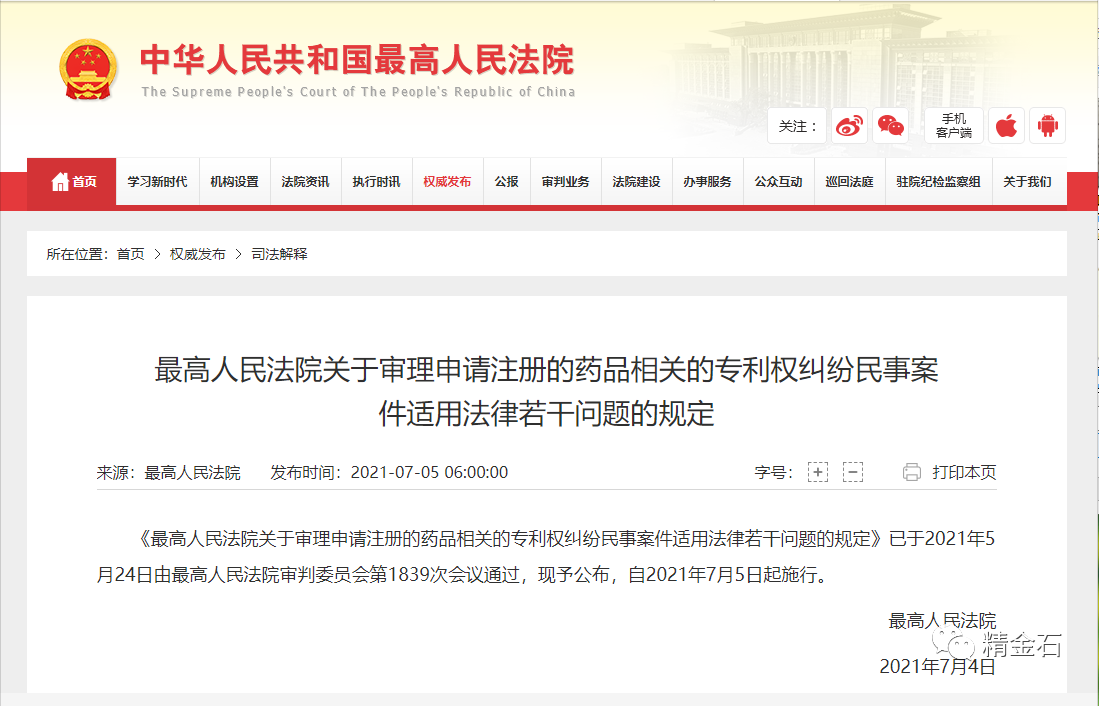 3、最高人民法院關(guān)于審理申請注冊的藥品相關(guān)的專利權(quán)糾紛民事案件適用法律若干問題的規(guī)定