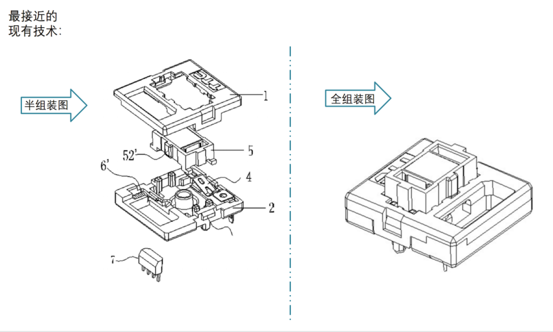 其次,關(guān)于證據(jù)2是否給出了將其公開內(nèi)容結(jié)合到證據(jù)1中的技術(shù)啟示。證據(jù)2公開了一種鍵盤開關(guān)內(nèi)產(chǎn)生按壓聲音的方法,證據(jù)2中的實(shí)施例1與證據(jù)1中的實(shí)施例1技術(shù)方案相同,即證據(jù)2也是在按壓件的凸楞52'下端具有導(dǎo)引斜面521',證據(jù)2還公開了如下技術(shù)特征:實(shí)施例中均是以彈性件敲擊上蓋為例,實(shí)際應(yīng)用中可以設(shè)計(jì)由彈性件形變回彈敲擊底座,或彈性件橫向形變回彈敲擊按壓件等均可,其主旨在于保護(hù)彈性件回彈復(fù)位時(shí)產(chǎn)生敲擊發(fā)聲(參見說明書第25段)。