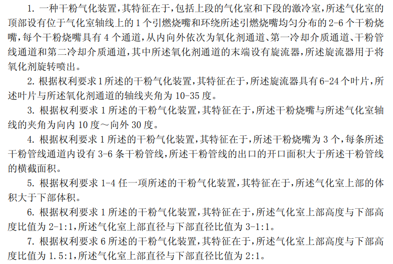 (1)本專利的權利要求1限定了排渣口的直徑與反應室直徑的比例為1:3-1:4;