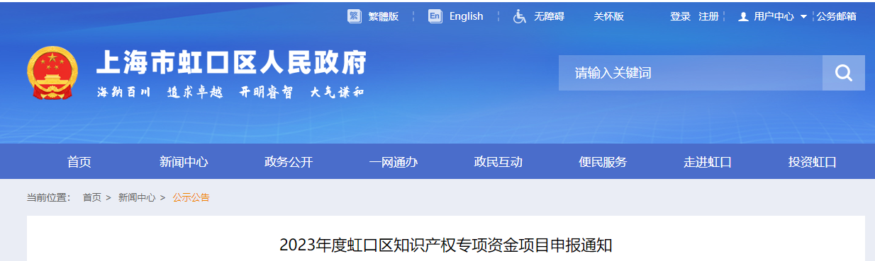 2023年度虹口區(qū)知識產(chǎn)權(quán)專項資金項目申報通知