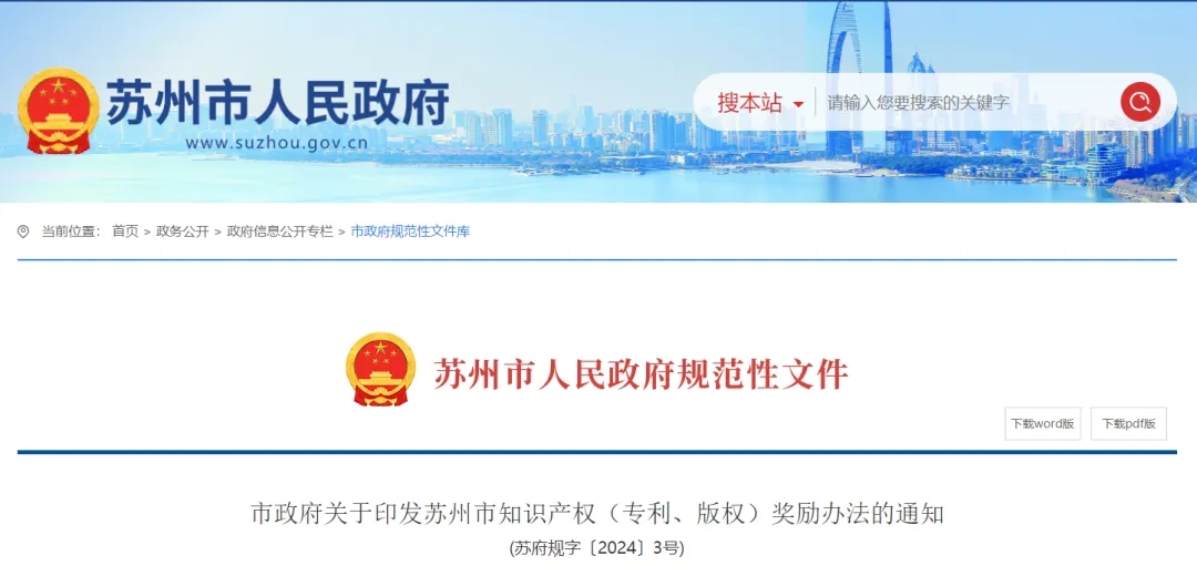 關(guān)于印發(fā)蘇州市知識(shí)產(chǎn)權(quán)(專(zhuān)利、版權(quán))獎(jiǎng)勵(lì)辦法的通知