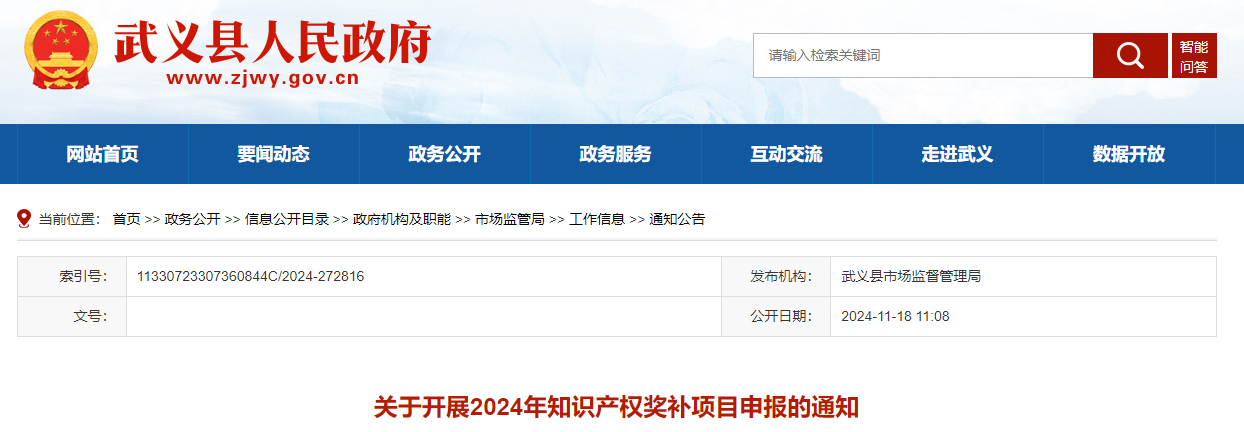 浙江武義關(guān)于開展2024年知識(shí)產(chǎn)權(quán)獎(jiǎng)補(bǔ)項(xiàng)目申報(bào)的通知