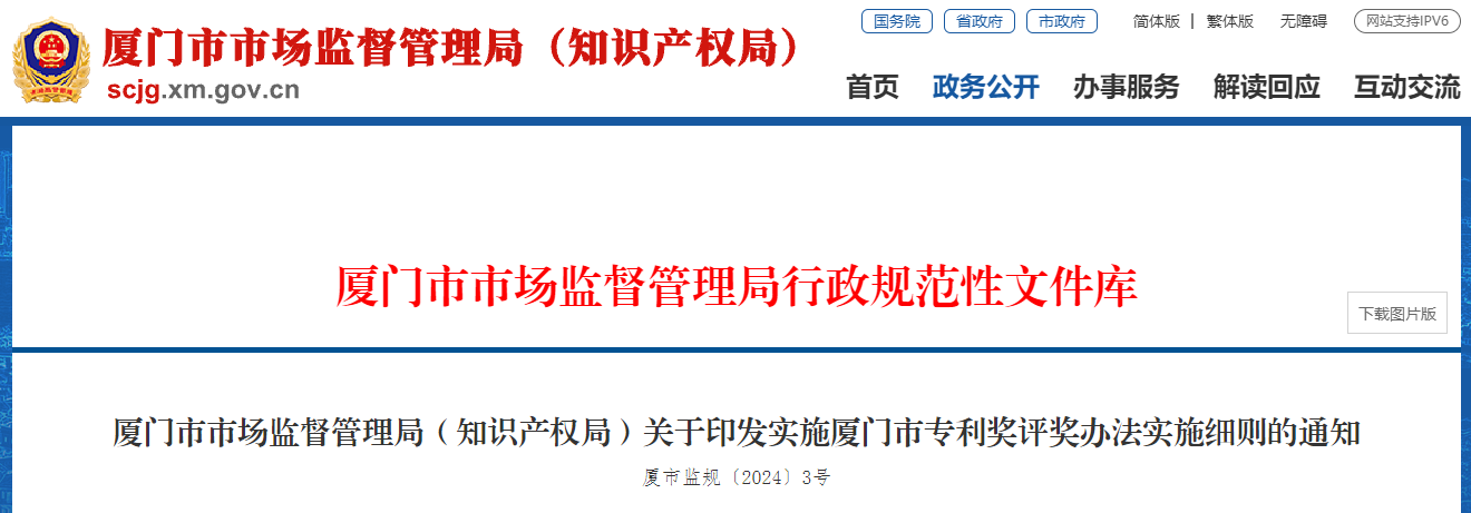 《廈門市專利獎(jiǎng)評(píng)獎(jiǎng)辦法實(shí)施細(xì)則》
