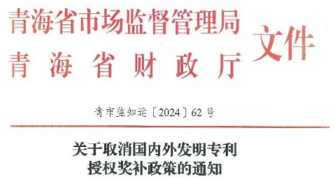 青海|關(guān)于取消國內(nèi)外發(fā)明專利授權(quán)獎(jiǎng)補(bǔ)政策的通知