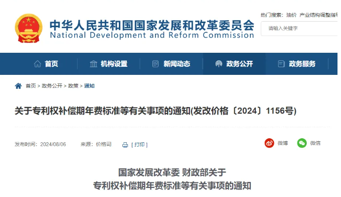 國家發(fā)展改革委 財(cái)政部關(guān)于專利權(quán)補(bǔ)償期年費(fèi)標(biāo)準(zhǔn)等有關(guān)事項(xiàng)的通知